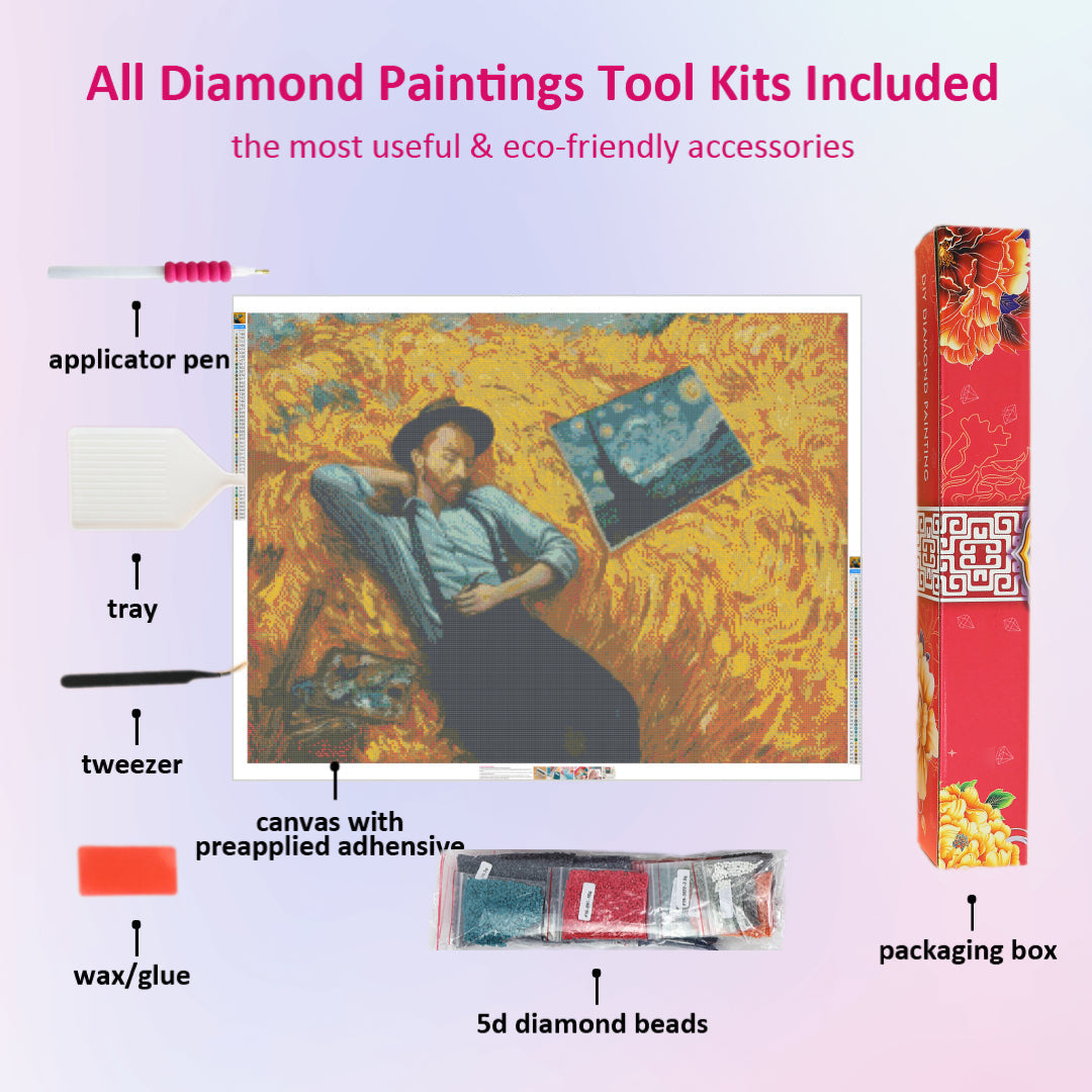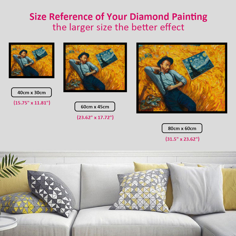 Capture the dreamy atmosphere of Van Gogh’s Another Lost Night in sparkling detail. This diamond painting kit turns the deep tones and expressive strokes into a dazzling masterpiece, giving you a calming creative activity and a stunning artwork to display.