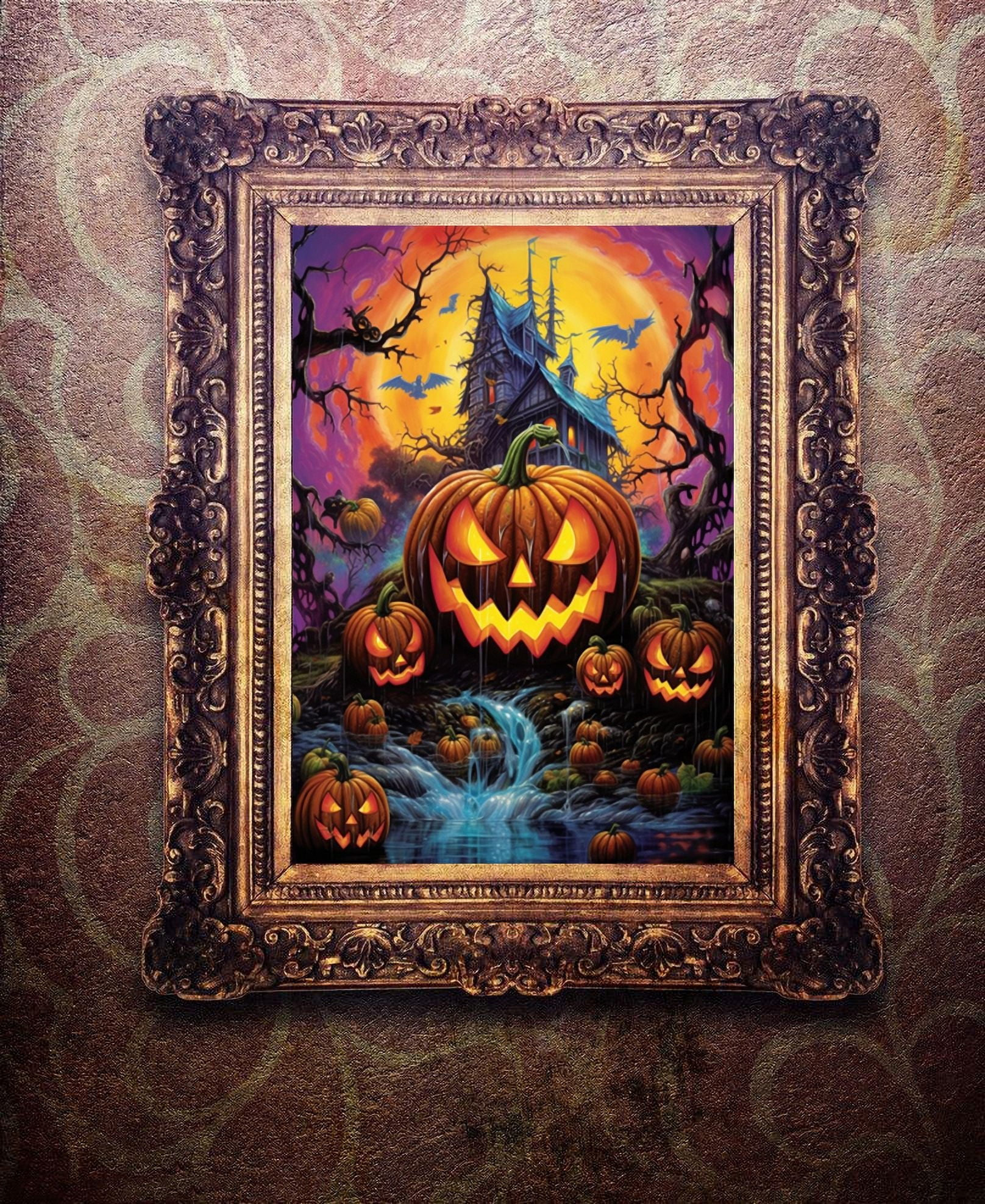 Halloween Pumpkins Diamond Painting captures the spooky charm of Halloween with vibrant, intricately arranged diamonds. The artwork showcases classic jack-o'-lanterns, bringing a festive and eerie atmosphere to your space. Perfect for Halloween lovers and diamond painting enthusiasts alike, it adds a colorful, seasonal touch to any home.